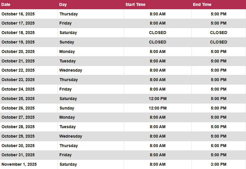 October 16th - November 1st